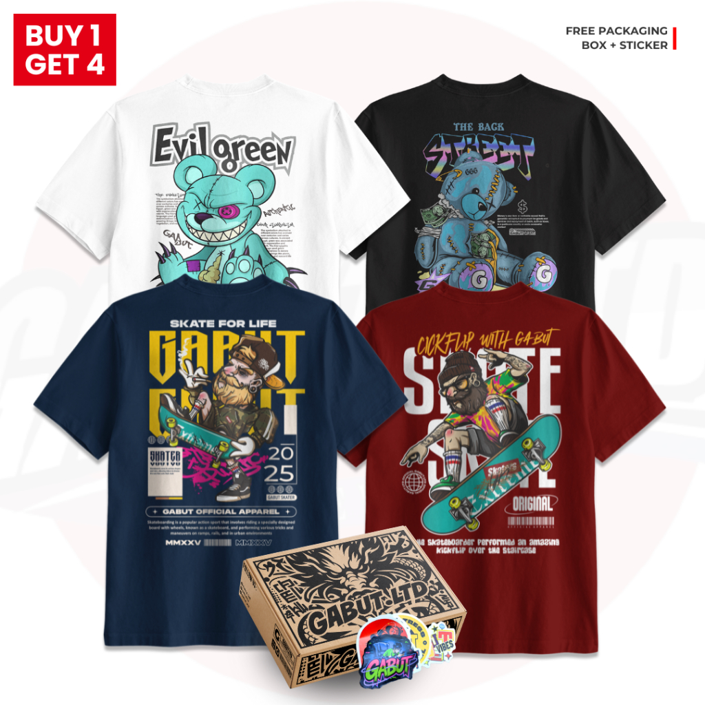 [GABUT] - Paket Bundling 4pcs Baju Kaos Distro Unisex Pria Wanita BDGBT4-001 Bahan Cotton Combed 24s Kaos Oblong Pria Wanita 100 PERSEN Produk Original