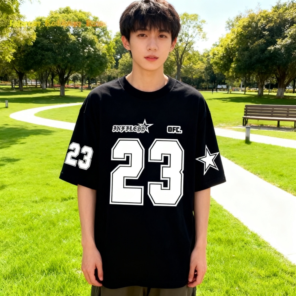 kaos T - Shirt Putih Katun Murni, Pria Wanita, Motif Angka 23 dan Bintang Keren, Gratis Ongkir