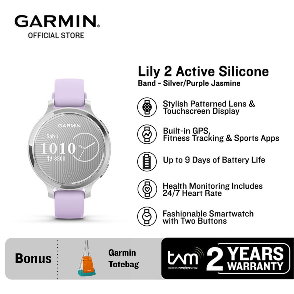Garmin Lily 2 Active Silicone Band - Silver/Purple Jasmine