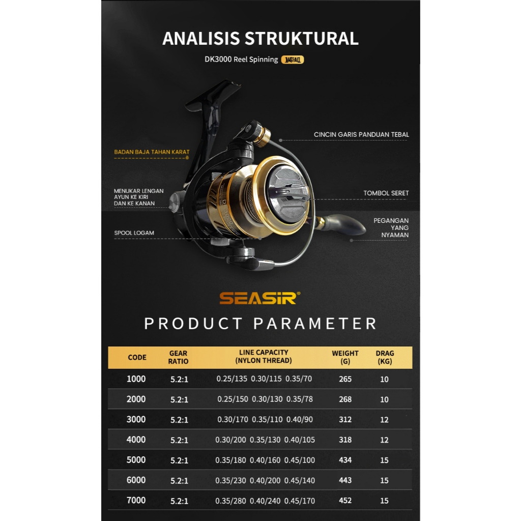 Reel Pancing Power Handle SEASIR DK x SEAHUNTER Full Besi Saltwater SW Semua Logam Memutar Spinning Reels Gulungan Putar