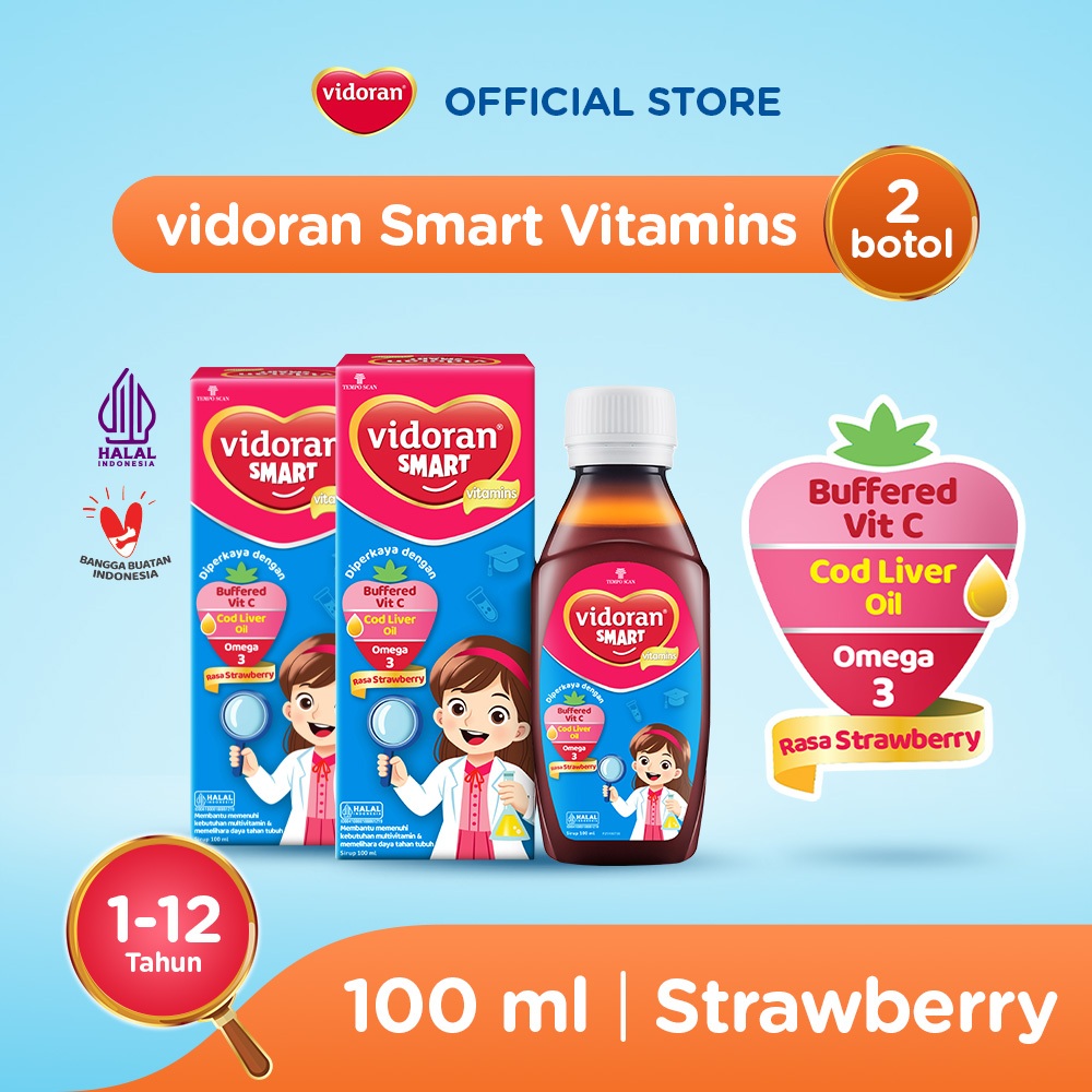 Vidoran Smart Strawberry Sirup 100 ml Vitamin Anak - 2pcs - Exp : 05.2026