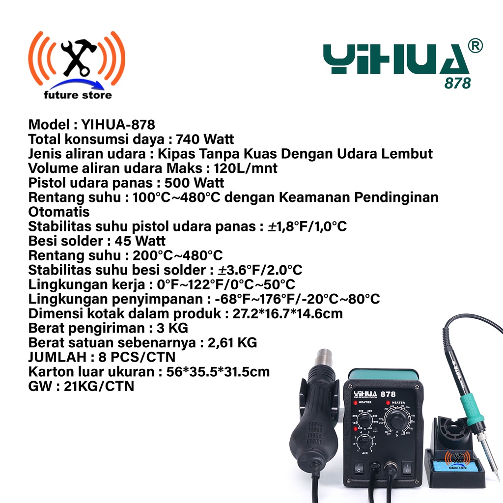 YIHUA 878 HOT Air SMD Rework Soldering Station - Blower - Solder Uap 2 IN 1 Original tool service