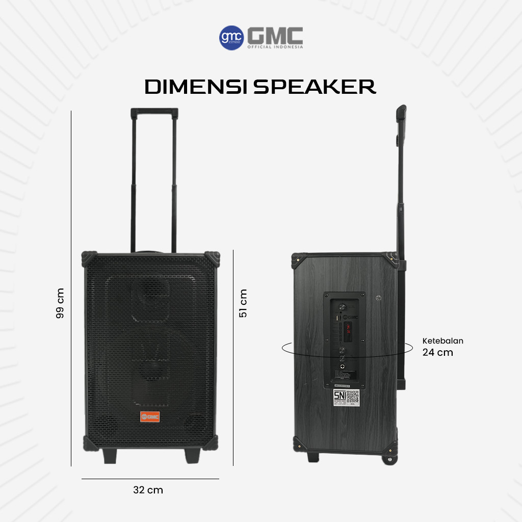 Speaker GMC 883L Karaoke Bluetooth 10” 115W Gratis Mic Wireless USB SD AV In Original