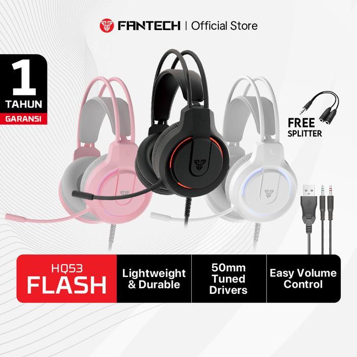 Fantech FLASH HQ53 Headset Gaming Mobile microphone Pc Noise Cancellation Built-in Microphone Lighting Merah Earphones H