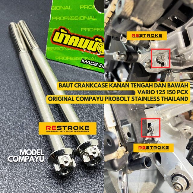 BAUT CRANKCASE KANAN BAWAH DAN TENGAH VARIO 125 150 PCX ORIGINAL COMPAYU STAINLESS THAILAND