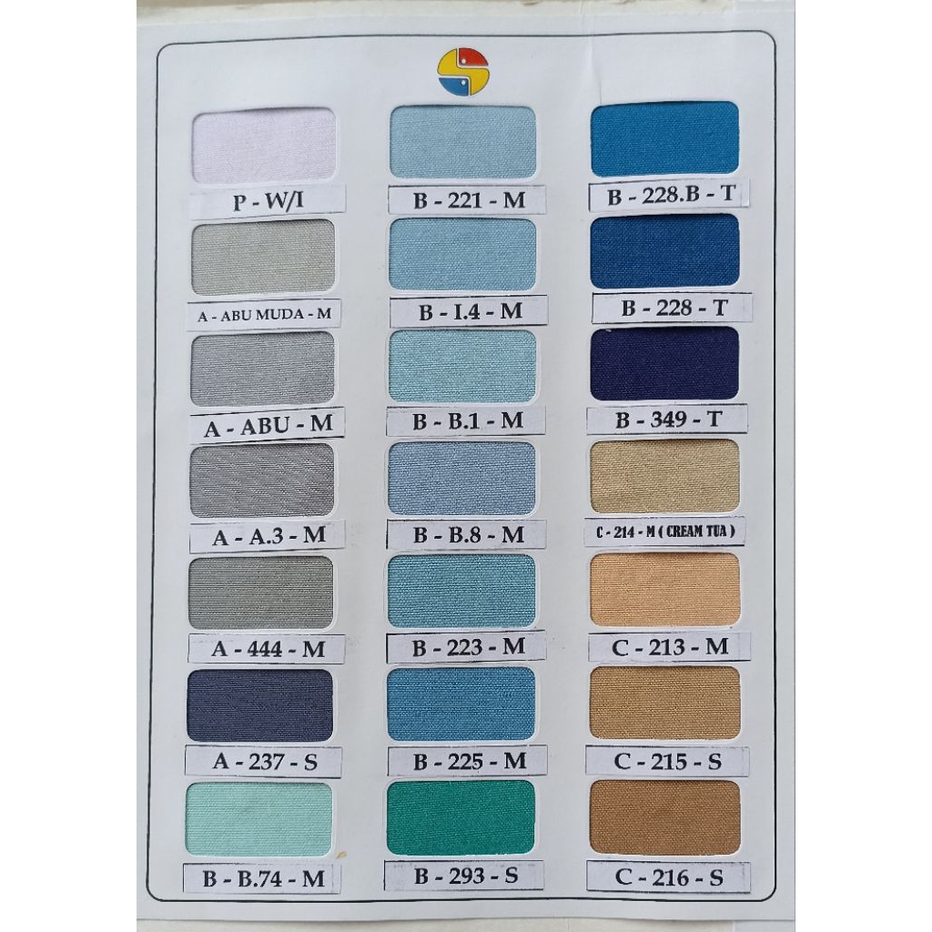 Oxford Putih, Oxford Hijau Muda, Oxford Pramuka C77, Oxford Pramuka JS916, Oxford Hitam, Oxford Cream, Oxford Tosca, Oxford Biru Muda, TC Putih, TC pramuka Js916, Toyobo Putih, Toyobo Hijau Muda, Toyobo Hitam, Drill Merah SD, Drill Putih, Drill Hitam, Drill Biru SMP, Drill Abu SMA, Drill Coklat Pramuka, Drill Hijau MI, Drill Hijau Muda, Drill Cream Pramuka, Drill Ungu Tua, Vios Hitam, Vios Abu SMA, Vios Putih, Vios Hijau MI, Vios Biru SMP, Vios coklat Pramuka, Vios Merah SD, Nagata putih, Nagata hitam, Nagata Abu SMA, Nagata Hijau MI, Nagata merah SD, Nagata biru SMP, Nagata CoklatPramuka