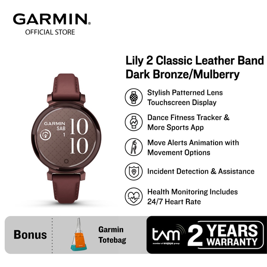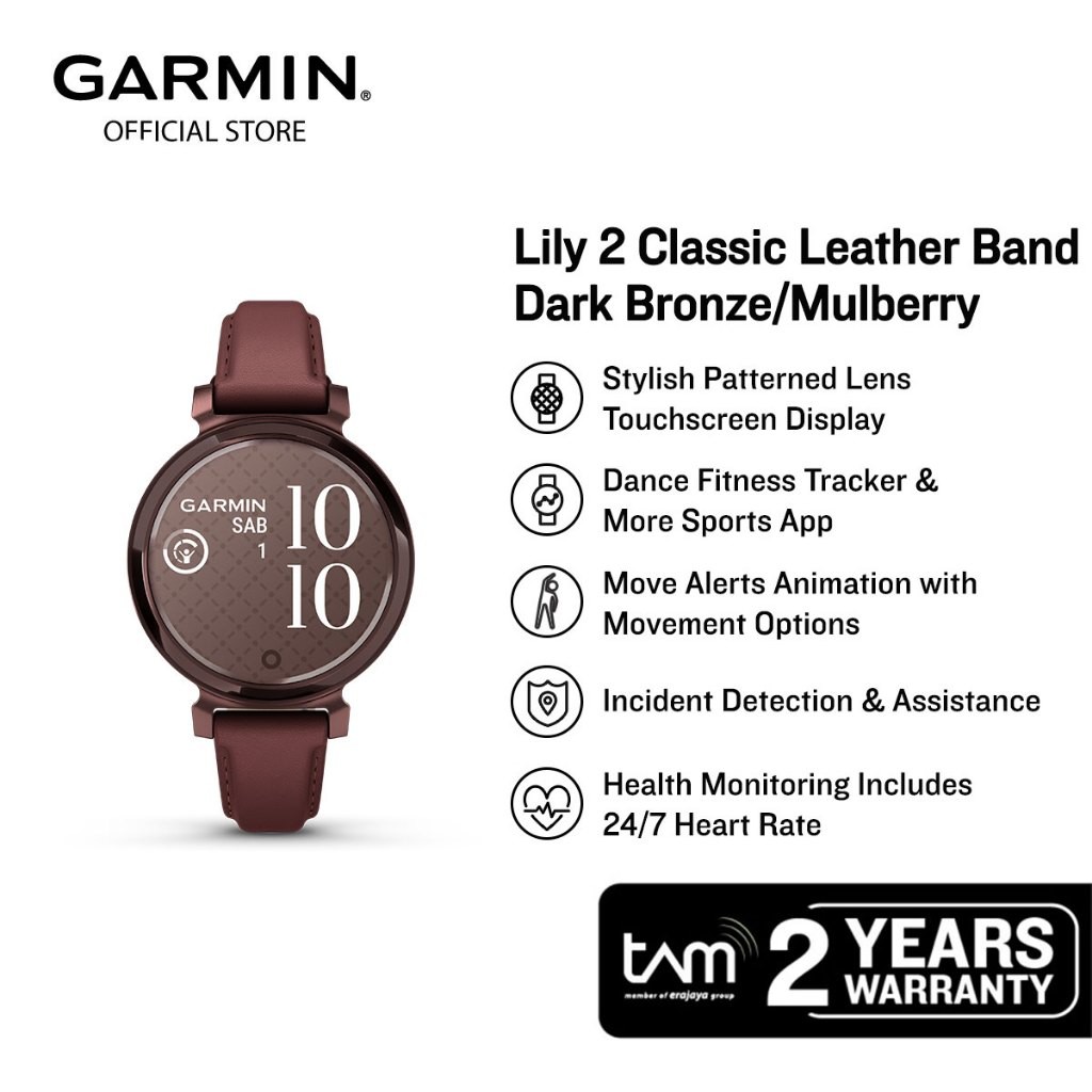 Garmin Lily 2 Classic Leather Band - Dark Bronze/Mulberry