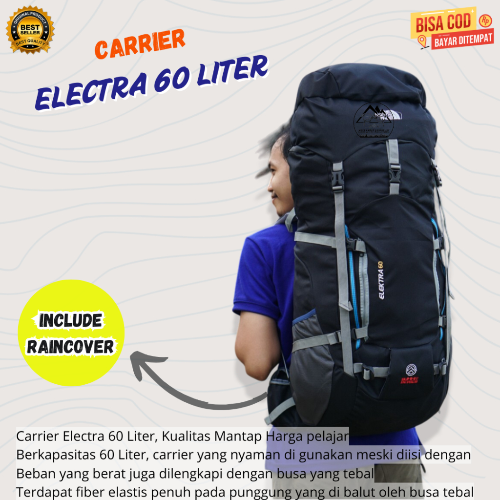 Tas Ransel Gunung Carrier Electra 45L 60 Liter Tas Hiking Gunung Berkualitas Kuat Camping Outdoor