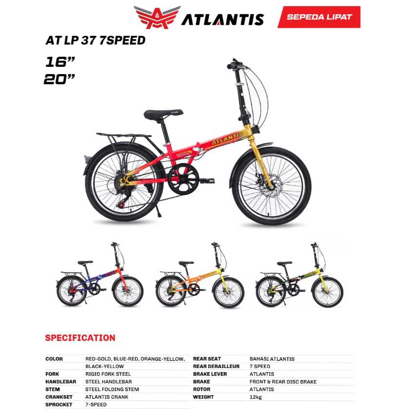 Sepeda Lipat Anak Dewasa 7 Speed ATLANTIS-LP 31/37 BAN 2.125 DISCBRAKE Folding Bike Original Model Baru