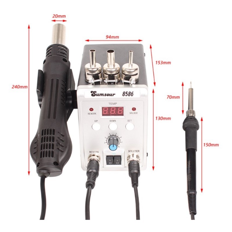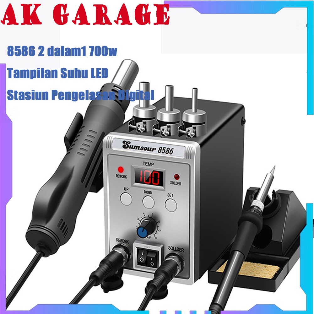 Stasiun Solder Blower Alat Las 8586 700W 2 in 1 Digital Display SMD Ulang Desoldering Heat Air Gun Solder Besi 220V ESD