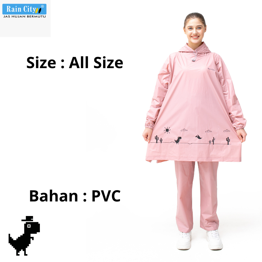 jas hujan RAIN CITY Jas Hujan Setelan Poncho Celana Dino Pixel Warna Lucu Motif Dino 70044