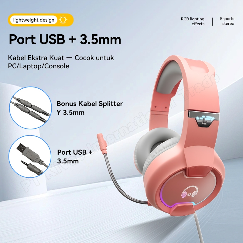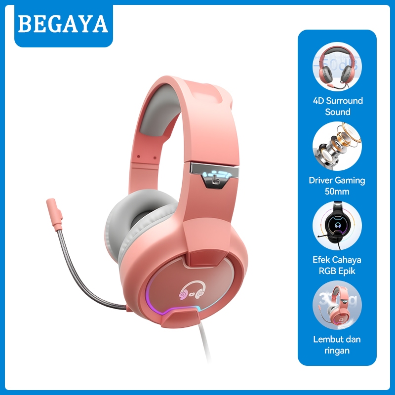 BEGAYA Headphone Kabel Gaming RGB MT140 HIFI Bass Noise Cancelling 4D Surround Sound Comfort Asli