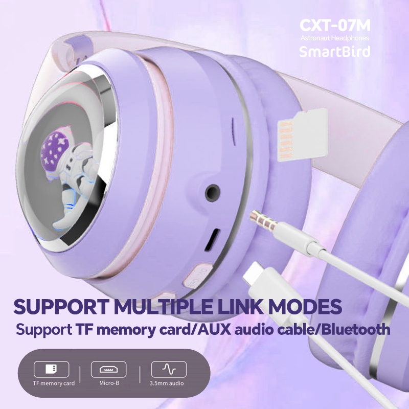 SmartBird Headphone CXT-07M Astronaut Bluetooth Wireless Headset Built-in MIC Stereo Hifi Sound Music Game RGB LED Light