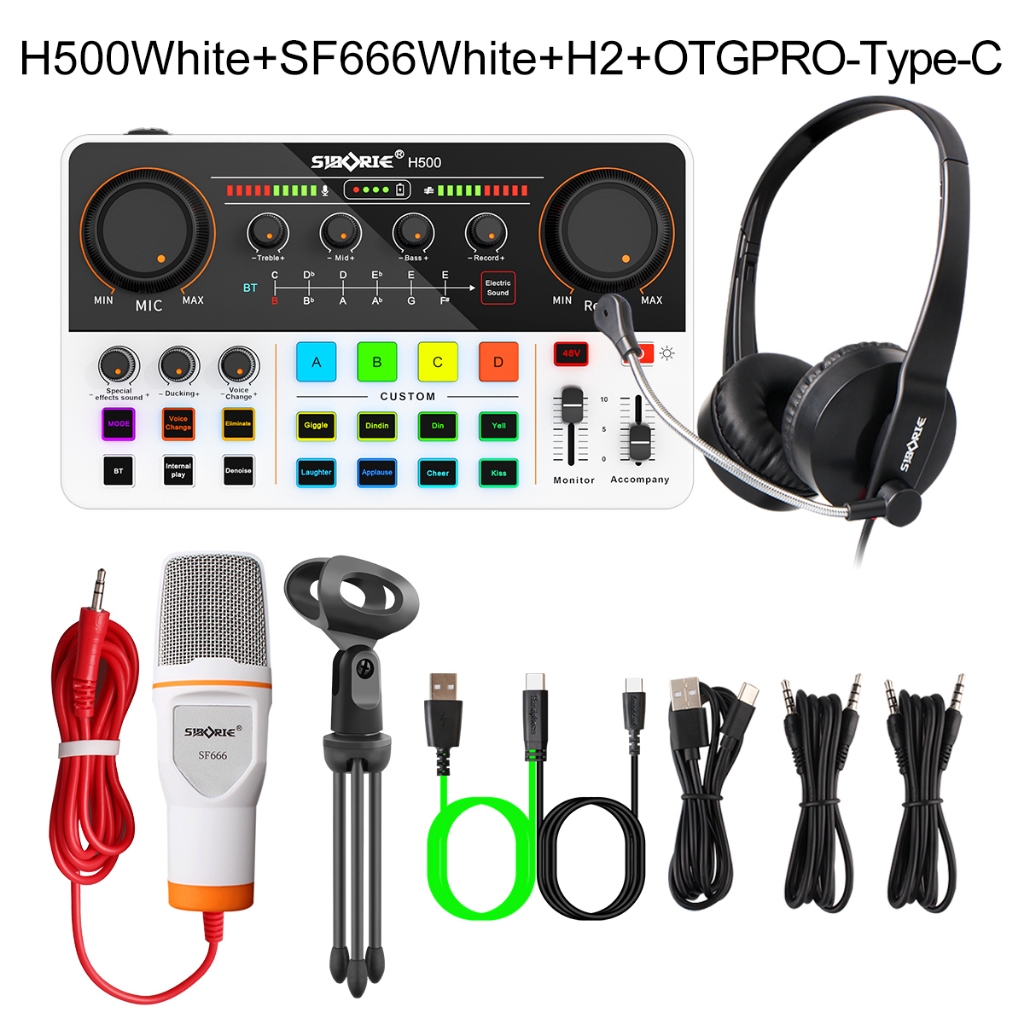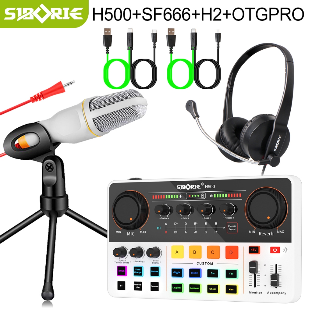 Siborie Paket Lengkap H500 Sound Card + SF666 Mic+H2 Headphone+OTGPRO Set Satu Set Dudukan Lengkap Gratis