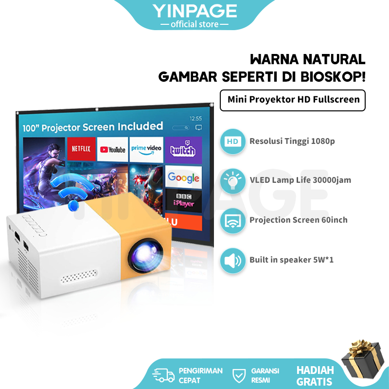 YINPAGE-Smart Projector/Proyektor Mini Teater Rumah Kecerahan Ultra HD 1080P Portable Mendukung Proyeksi Ponsel Cocok un