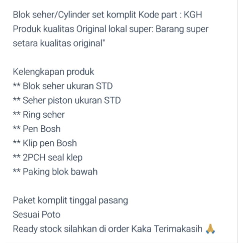 Blok seher Komplit KGH Honda CS1 Semua type tahun, Original lokal super