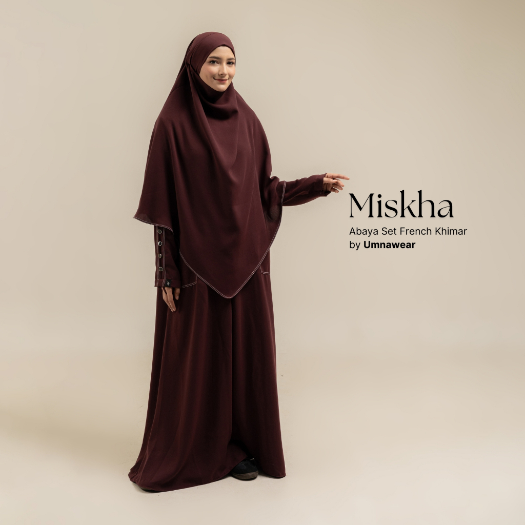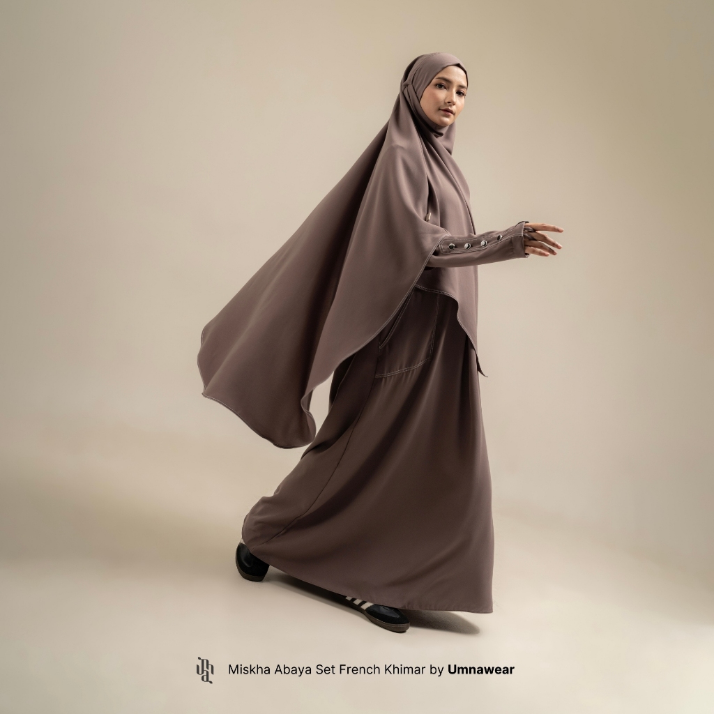 Miskha Abaya Set French Khimar Natail Syari By Umnawear - Gamis Umroh Haji Lebaran 2026