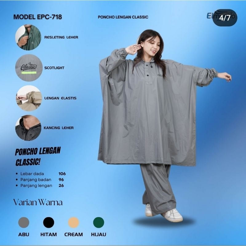 jas hujan CLASSIC 718 - Jas Hujan Elmondo Setelan Pria Wanita - Mantel Ujan Jumbo