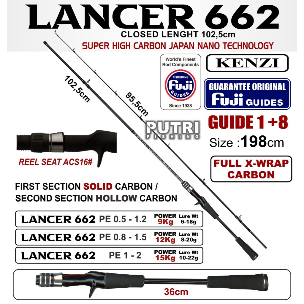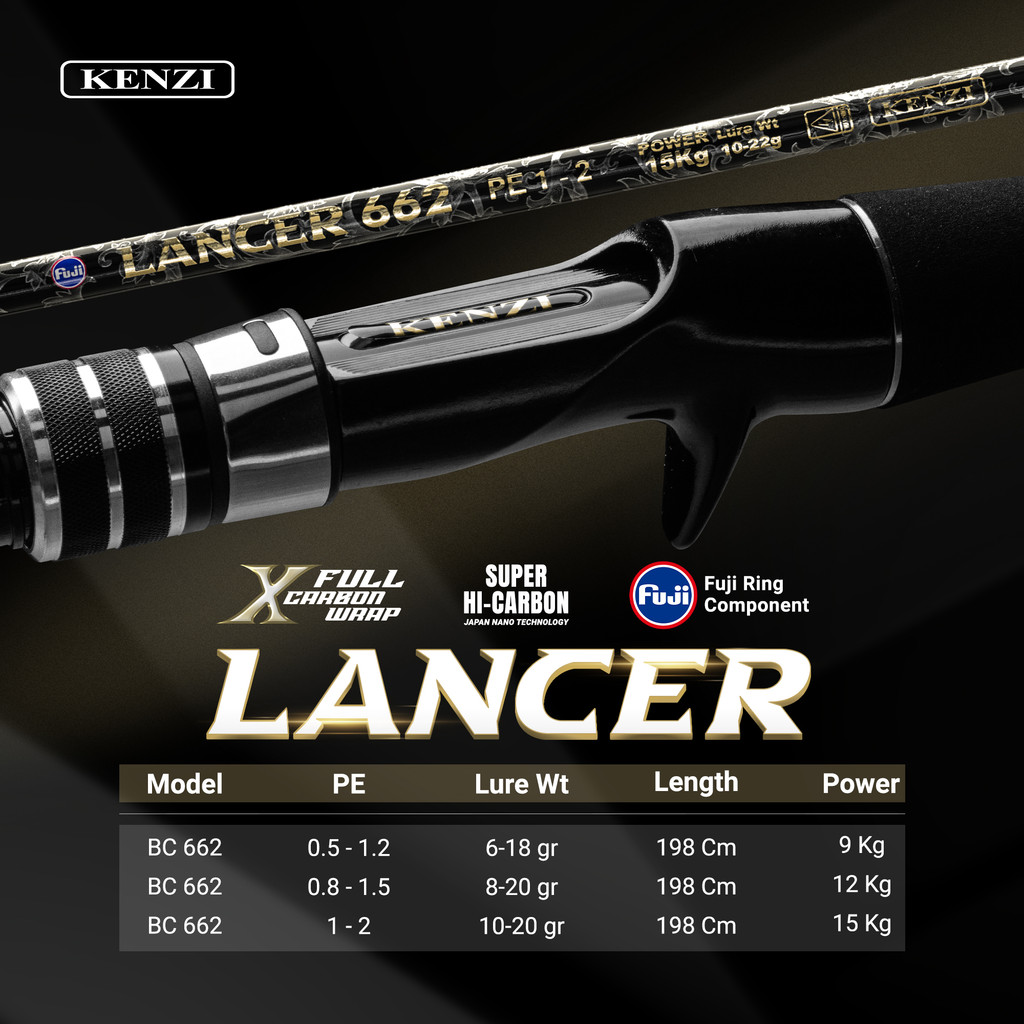 Joran Pancing Kenzi Lancer 662 Baitcasting Solid Carbon Fuji Guides 198 Cm