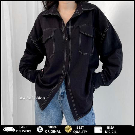 Kemeja Wanita Terbaru dan Kekinian Atasan Wanita Kekinian Korea Oversize Kantor/Casual - Pocket Shirt Basic