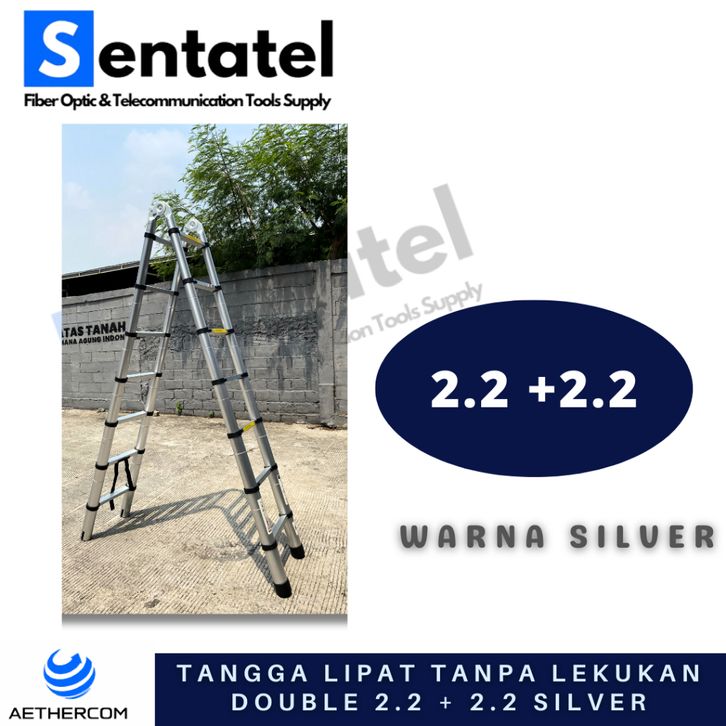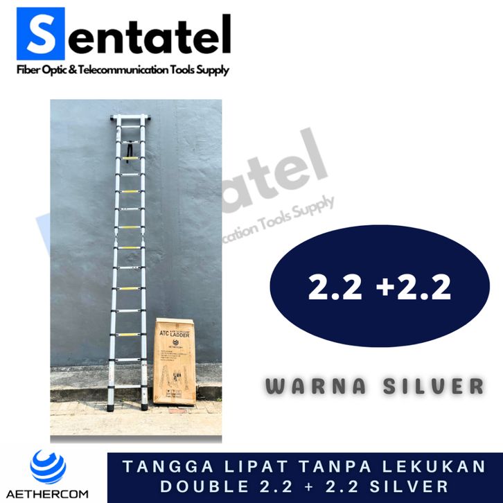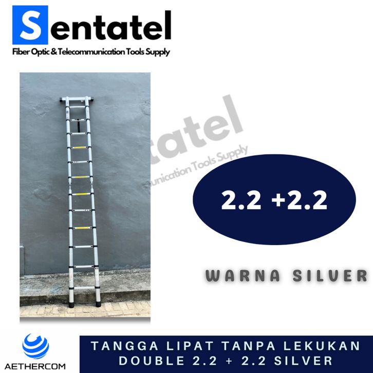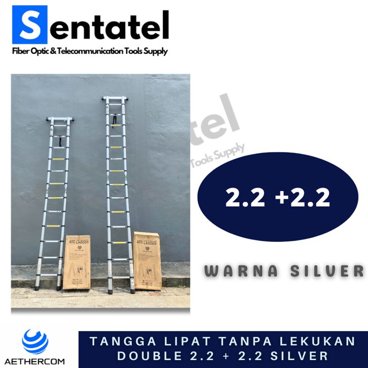 TANGGA LIPAT ALUMINIUM TELESKOPIK (2.2M+2.2M) 4.4M TANPA LEKUKAN DOUBLE TELESCOPIC LADDER 4.4M