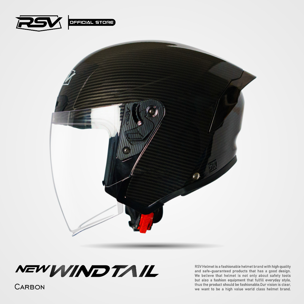 HELM RSV NEW WINDTAIL CARBON GLOSSY SINGLE VISOR - HELM HALF FACE UNISEX ORIGINAL RSV OFFICIAL STORE