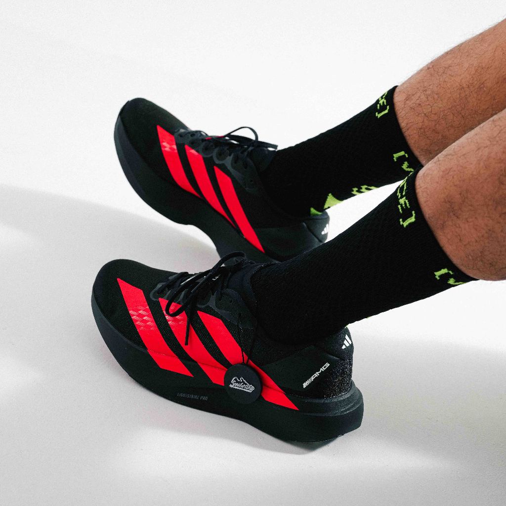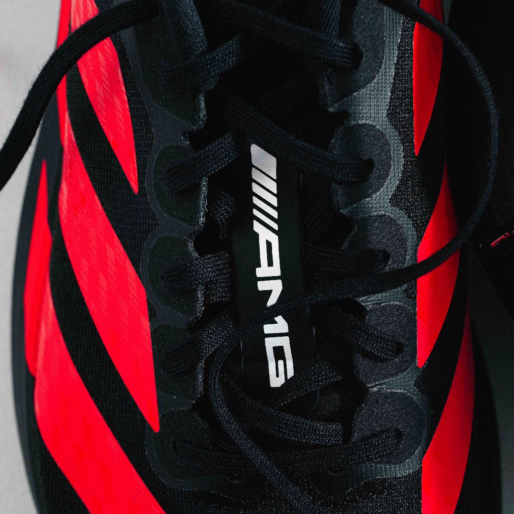 Adizero Evo SL x Mercedes AMG Black lucid Red