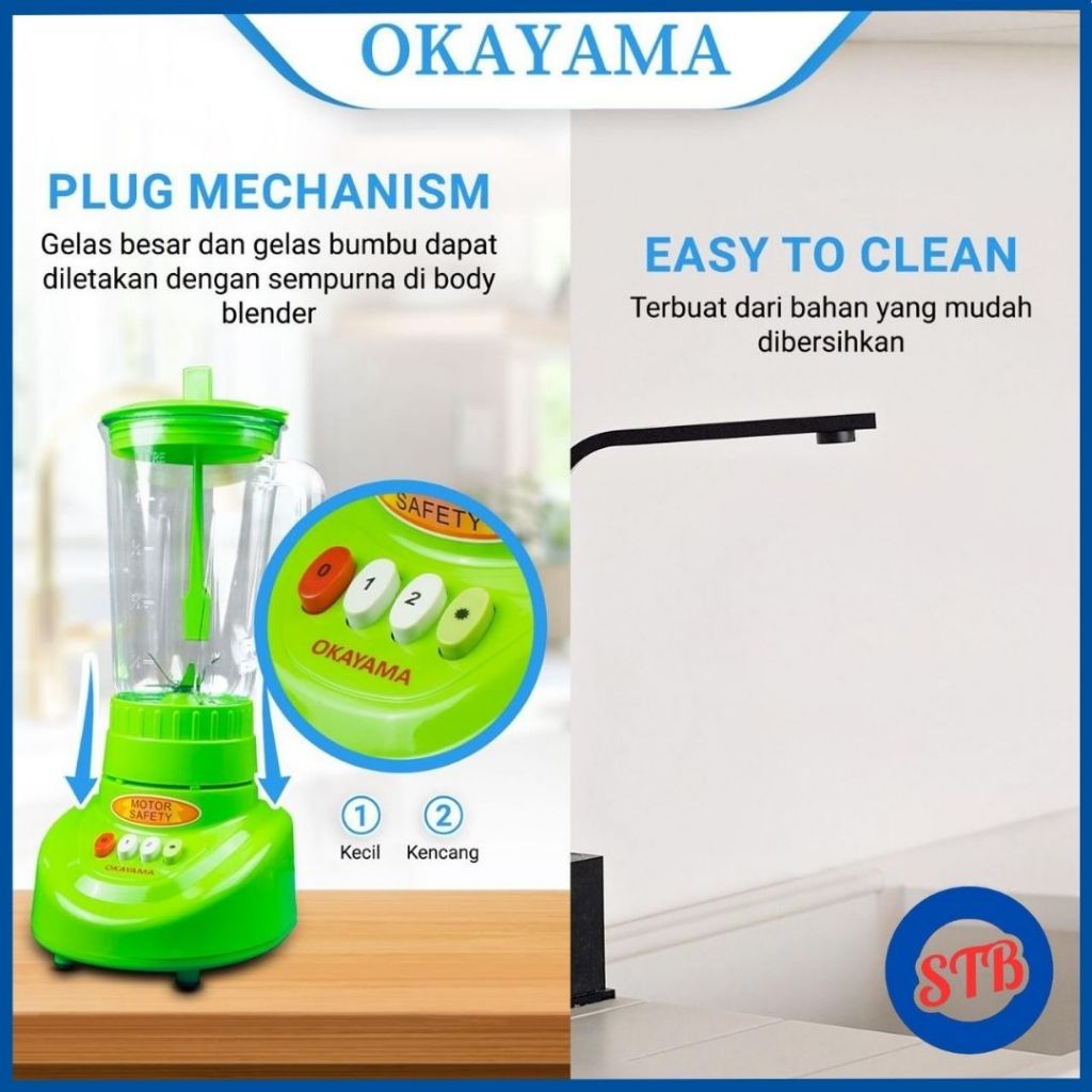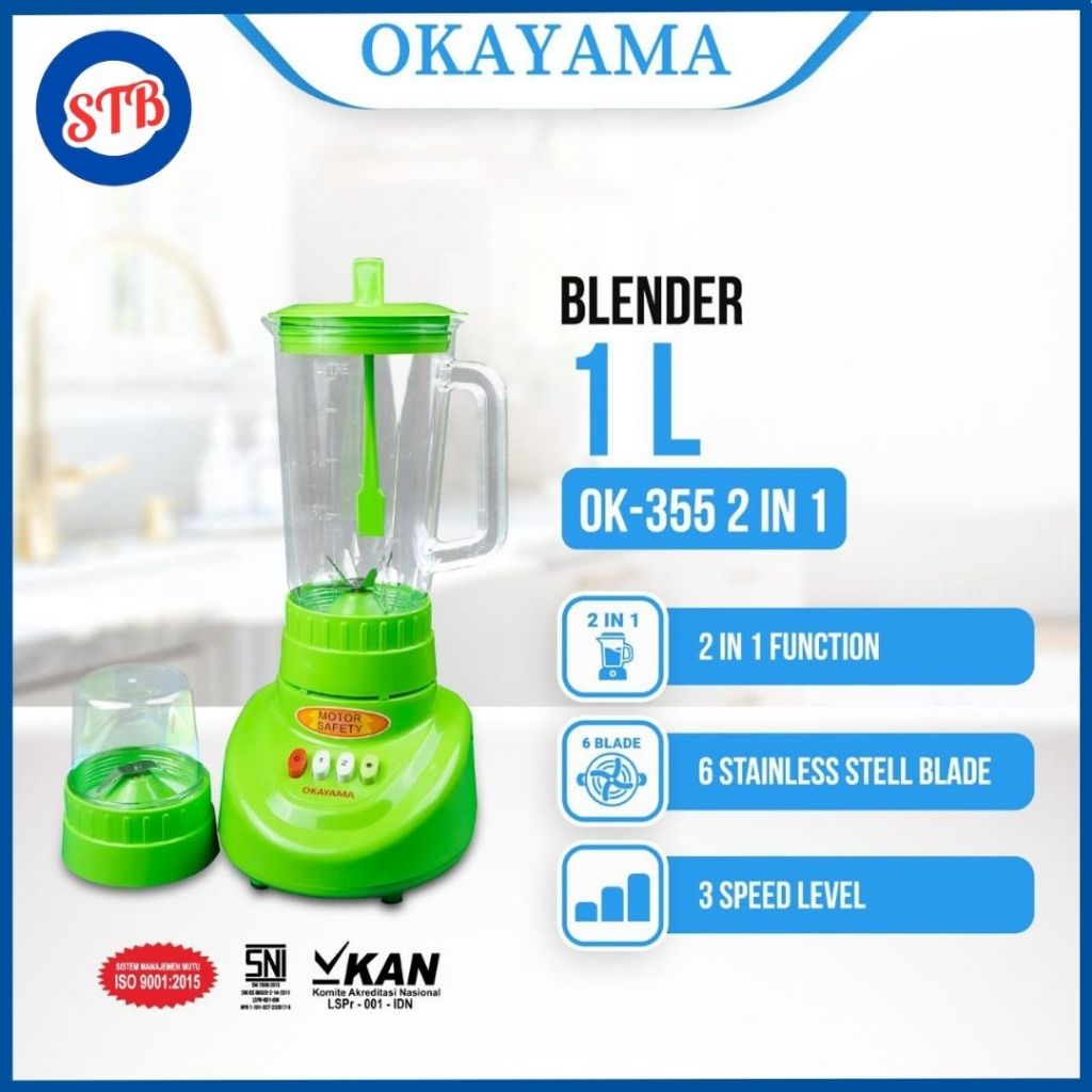 [Star] BLENDER OKAYAMA 3 IN 1 OK-355 1 LITER peralatan rumah kecepatan variabel pembuat jus buah wadah plastik warna hijau buah