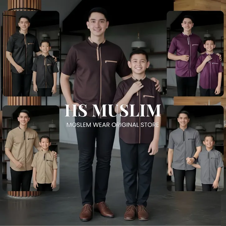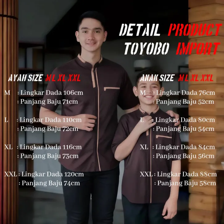 BAJU COUPLE KELUARGA KOKO PRIA DEWASA & ANAK LAKI LAKI BAHAN TOYOBO MOTIF YUSUF LENGAN PENDEK PREMIIUM