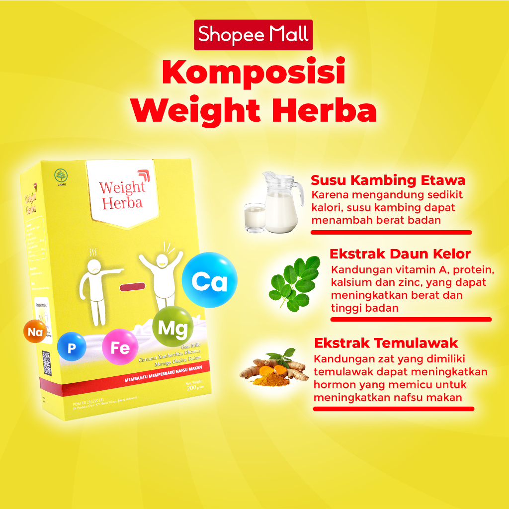 Weight Herba 5 Box Terbaik - Susu Herbal Penambah Nafsu Makan & Penggemuk Berat Badan | 200gr
