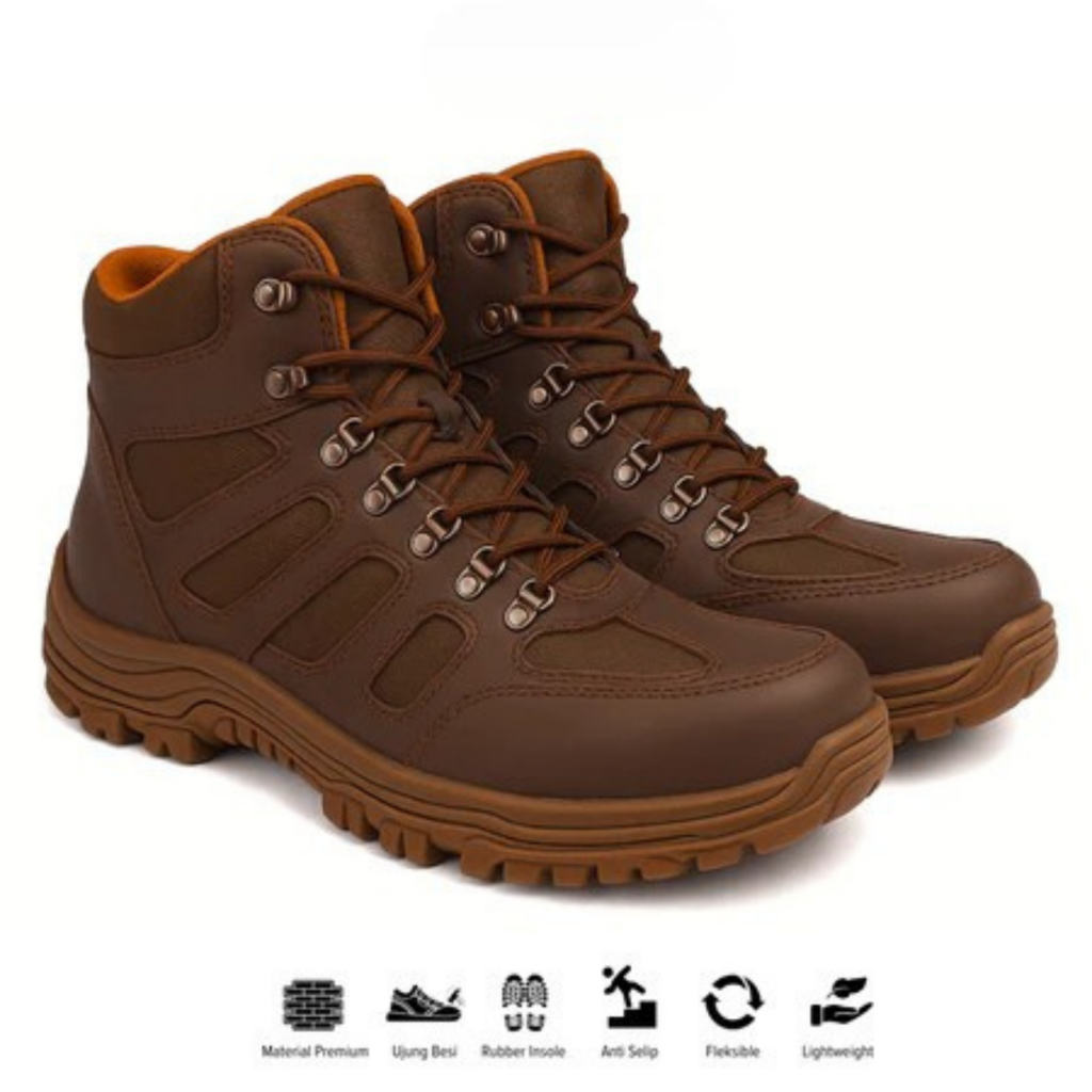 Sepatu Safety Pria Ujung Besi - Sepatu Boots Pria Septi Outdoor Tracking Hiking Adventure Proyek(TERMURAH)