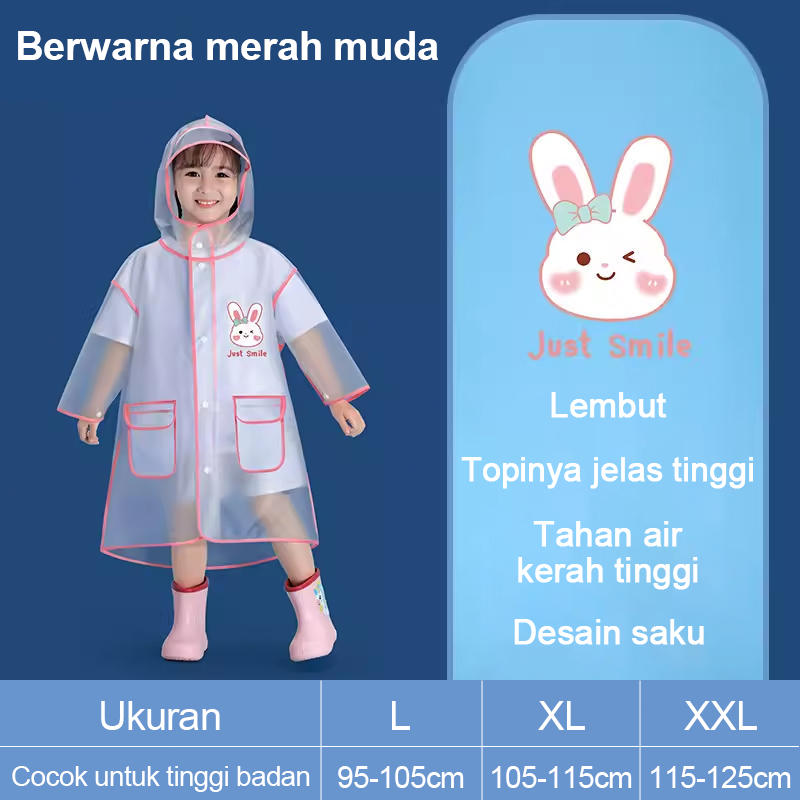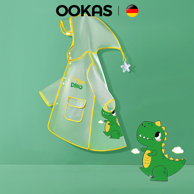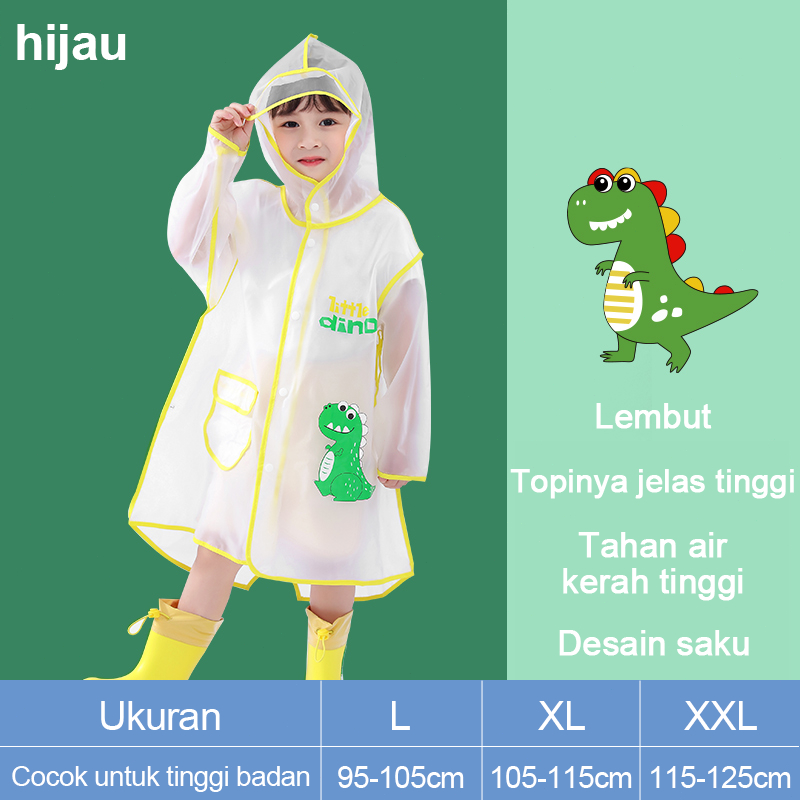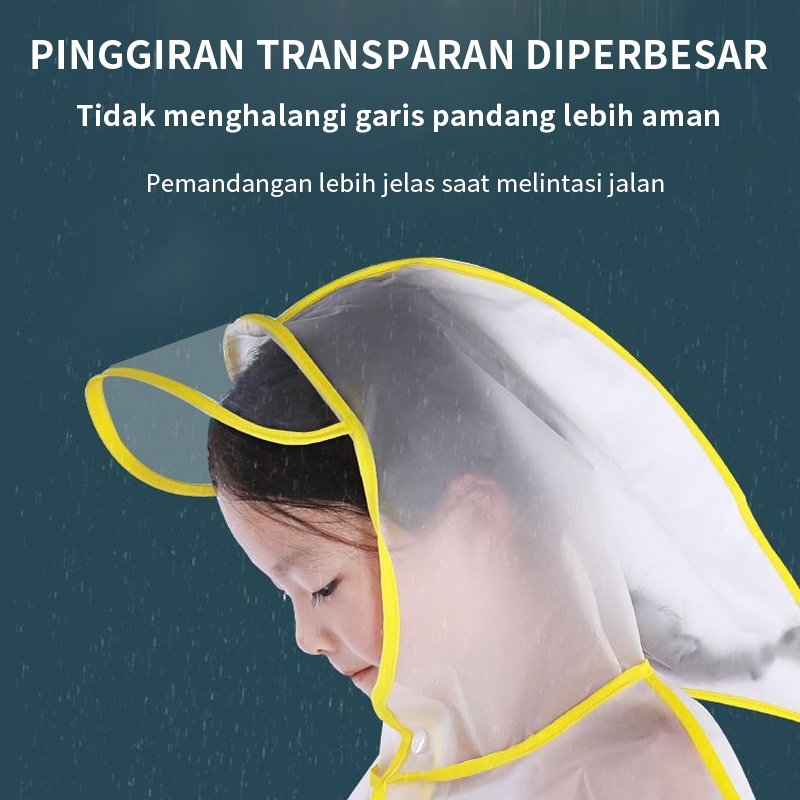 jas hujan anak OOKAS jas hujan anak raincoat terusan Bahan EVA transparan hoodie lembut Pinggiran diperpanjang