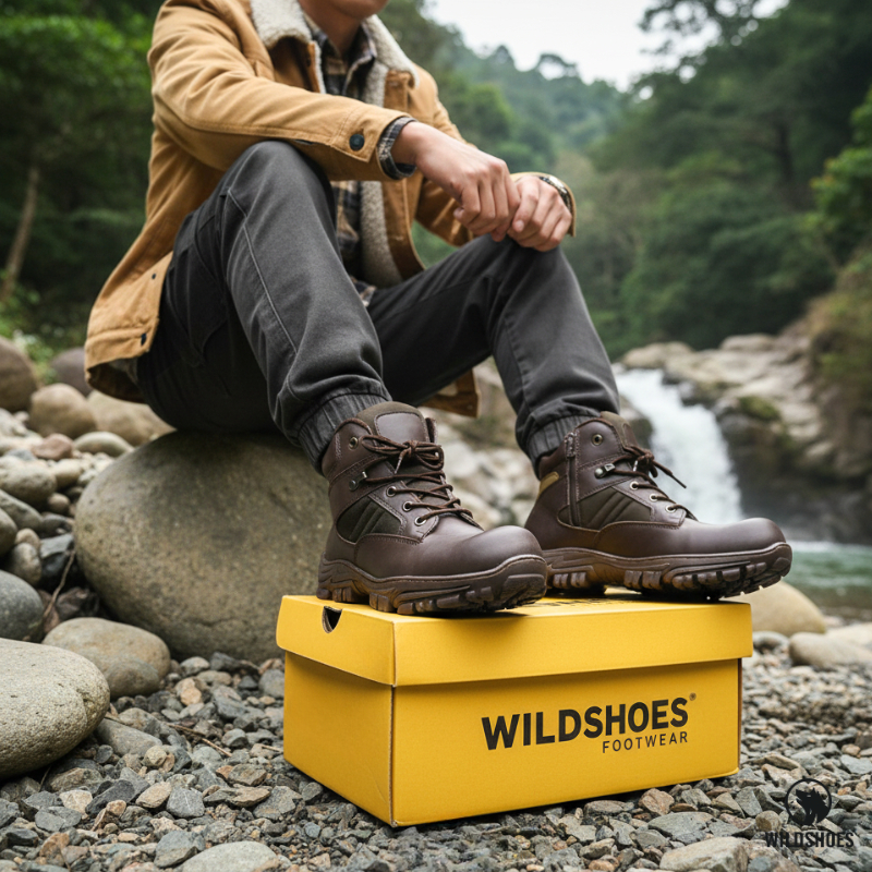 Sepatu Safety Pria High Best Quality - Sepatu Cordura Tactical Hitam Krem - Sepatu Boot Outdoor Tracking - WILDSHOES
