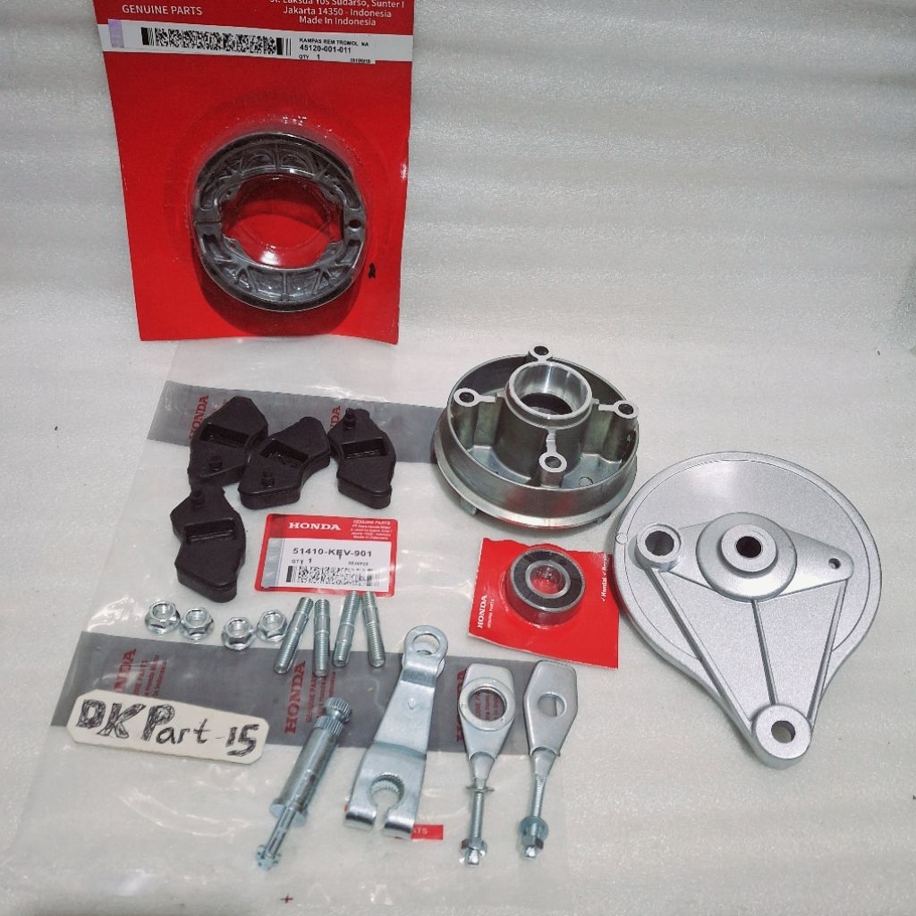 Paket nap gear 8 aitem KEV tutup tromol, kampas rem, karet, Anting, paha, as paha,Baut gir Honda Supra X Lama Fit Lama Grand win