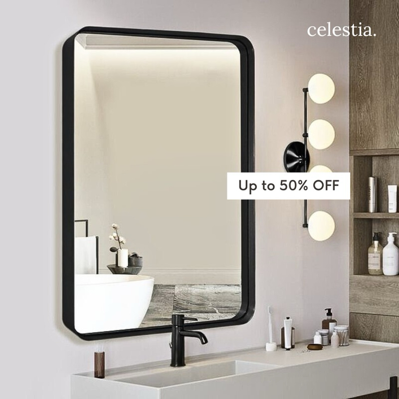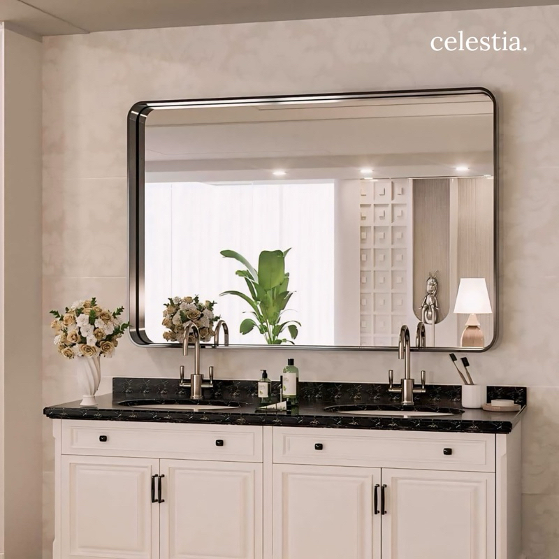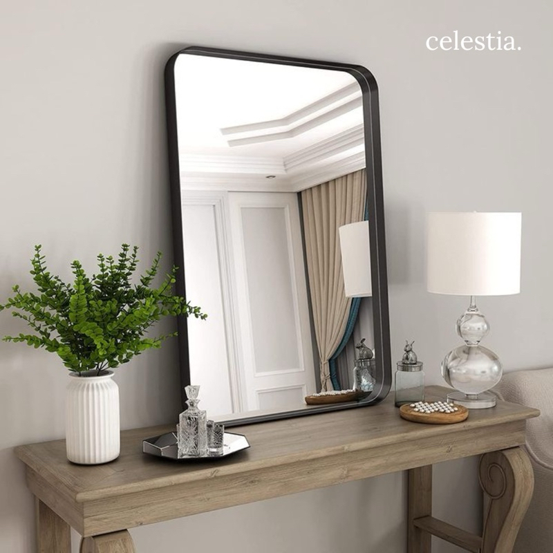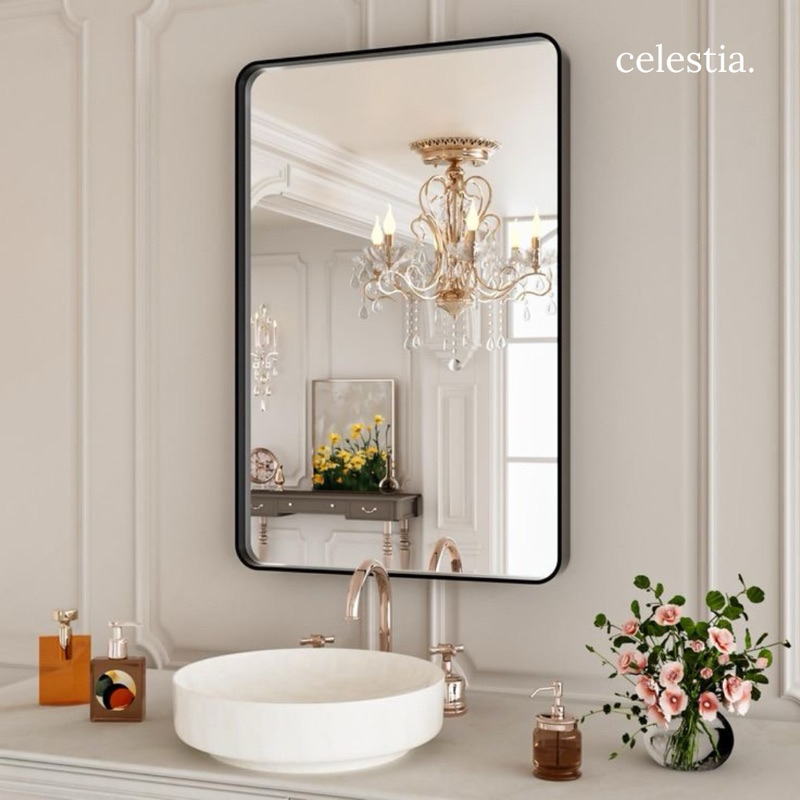 [Star] Cermin Aesthetic Kotak Persegi Radius Frame Hitam Putih Dekorasi Ruangan Rias Makeup Wastafel Kamar Mandi Free Packing