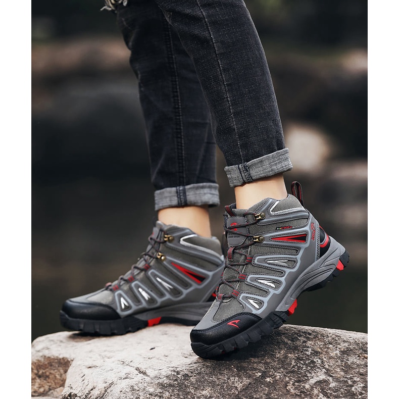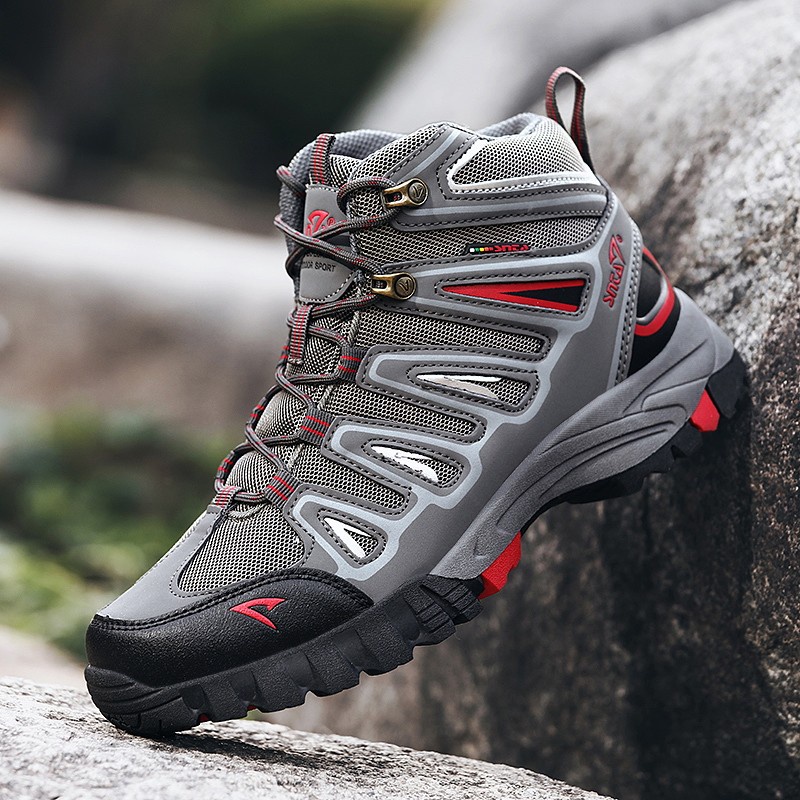 Sepatu Gunung SNTA 500 Grey Red - Gratis Kaos Kaki / Sepatu Hiking SNTA / Sepatu Outdoor SNTA