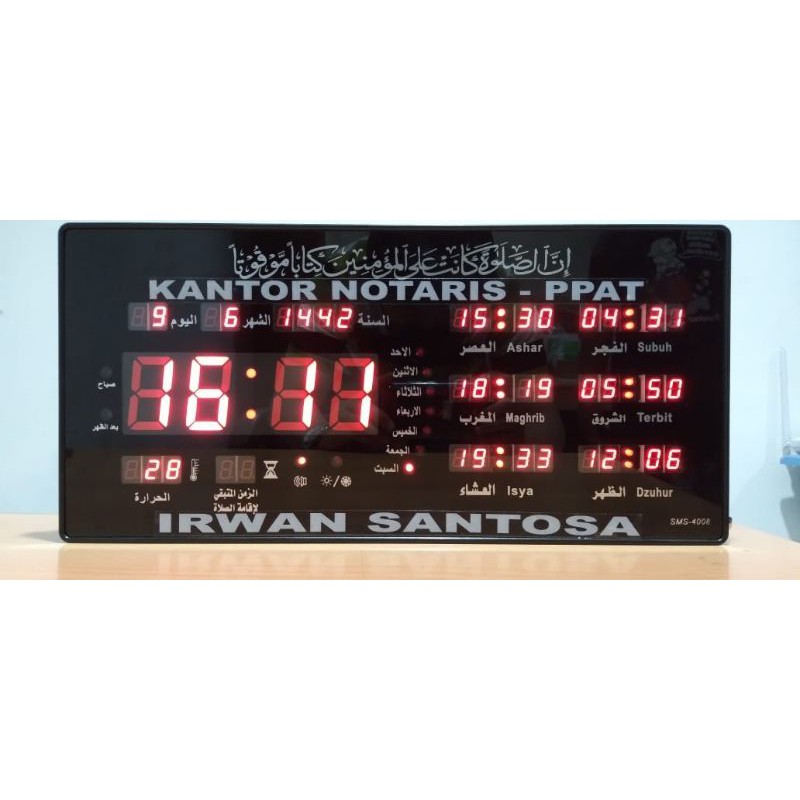 Jam Digital Jadwal Sholat Suara Adzan & Suara Biip Biip Otomatis Sonifer SMS-4008 +CUSTOM NAMA