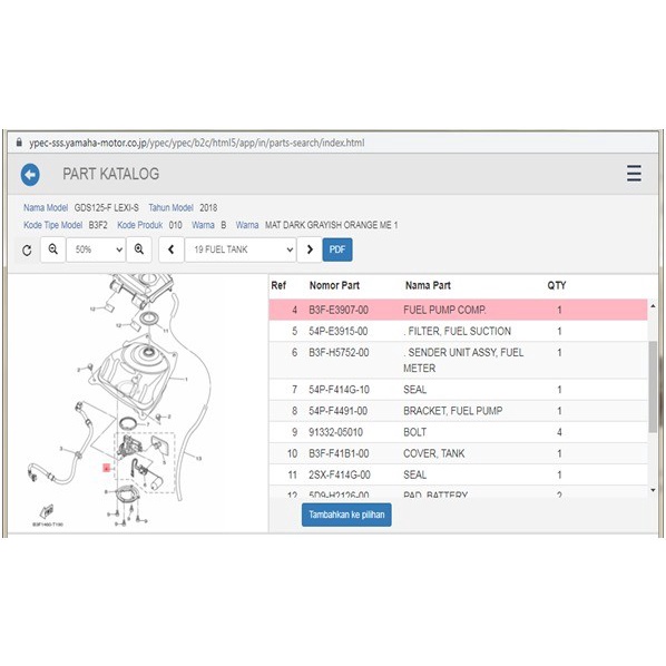 Pompa Bensin (semua jenis Lexi) / Fuel Pump Comp B3F-E3907-01