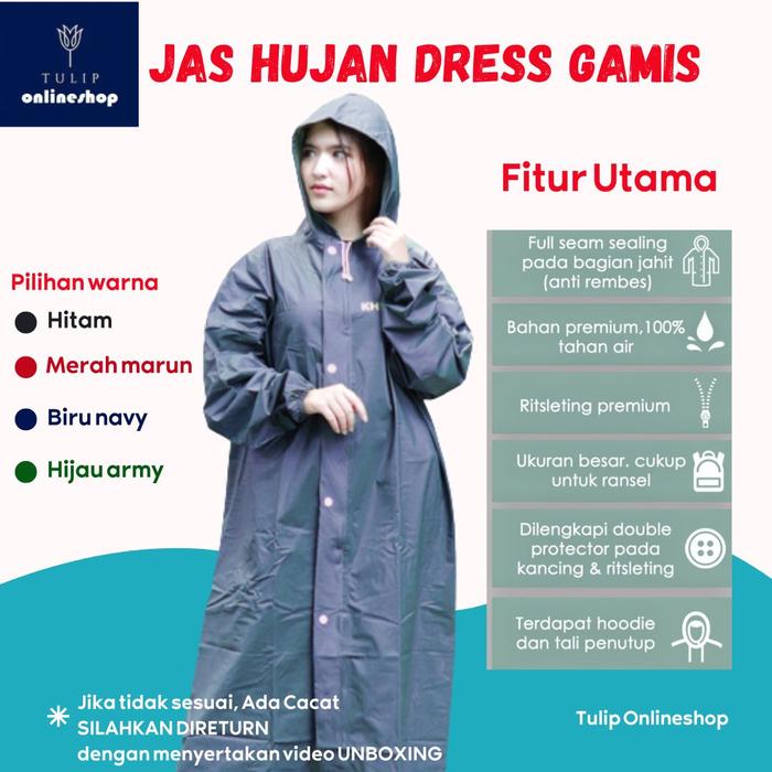 Jas Hujan Mantel Hujan Wanita Dewasa Untuk Gamis Muslimah Hijab Model Dress Terusan Kualitas Premium