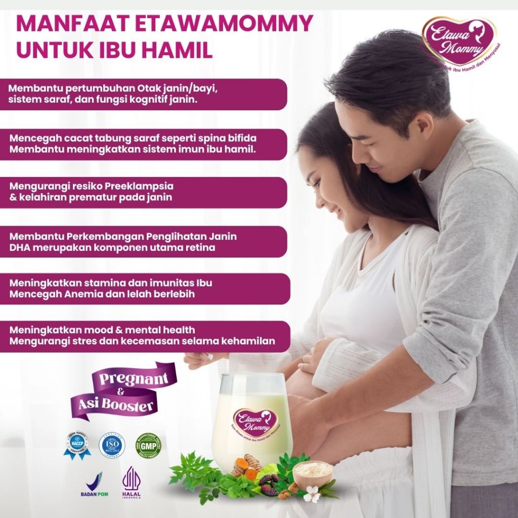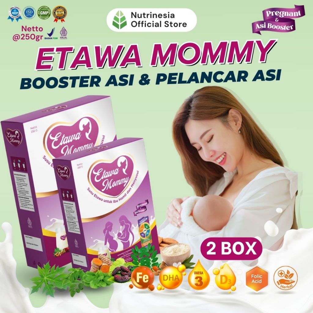 Etawa Mommy Susu Pelancar ASI & Susu Ibu Hamil Mengandung Omega 3, DHA, Asam Folat, Vitamin D3 & Herbal Alami Paket 2 Bo