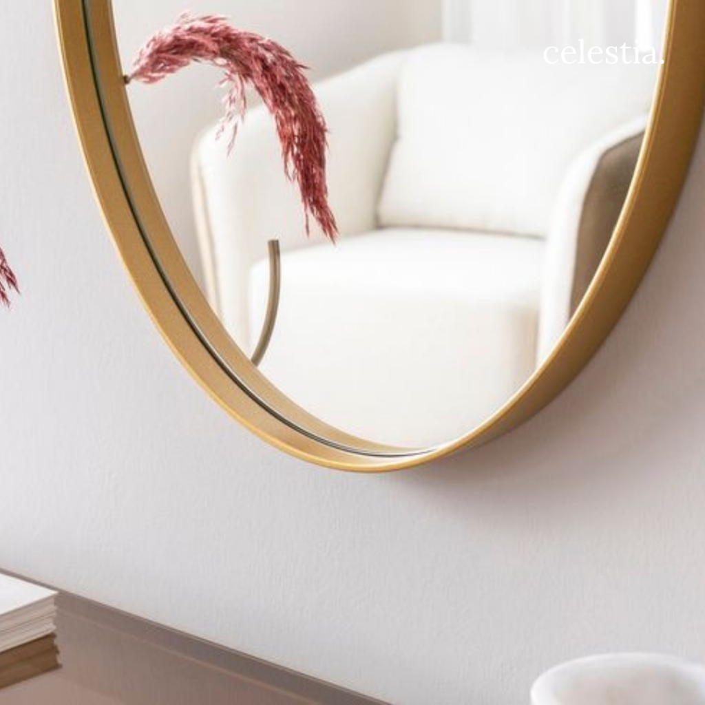 [Star] Cermin Estetik Motif Oval Frame Gold/Gold Glossy Cermin Dekorasi Ruangan Cermin MakeUp Cermin Kamar Mandi Cermin 100 PERSEN