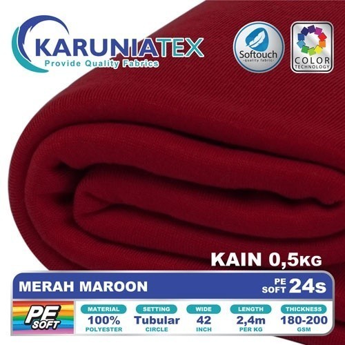 Kain Kaos PE Soft 24s Kiloan | Merah Maroon | Karunia Textile