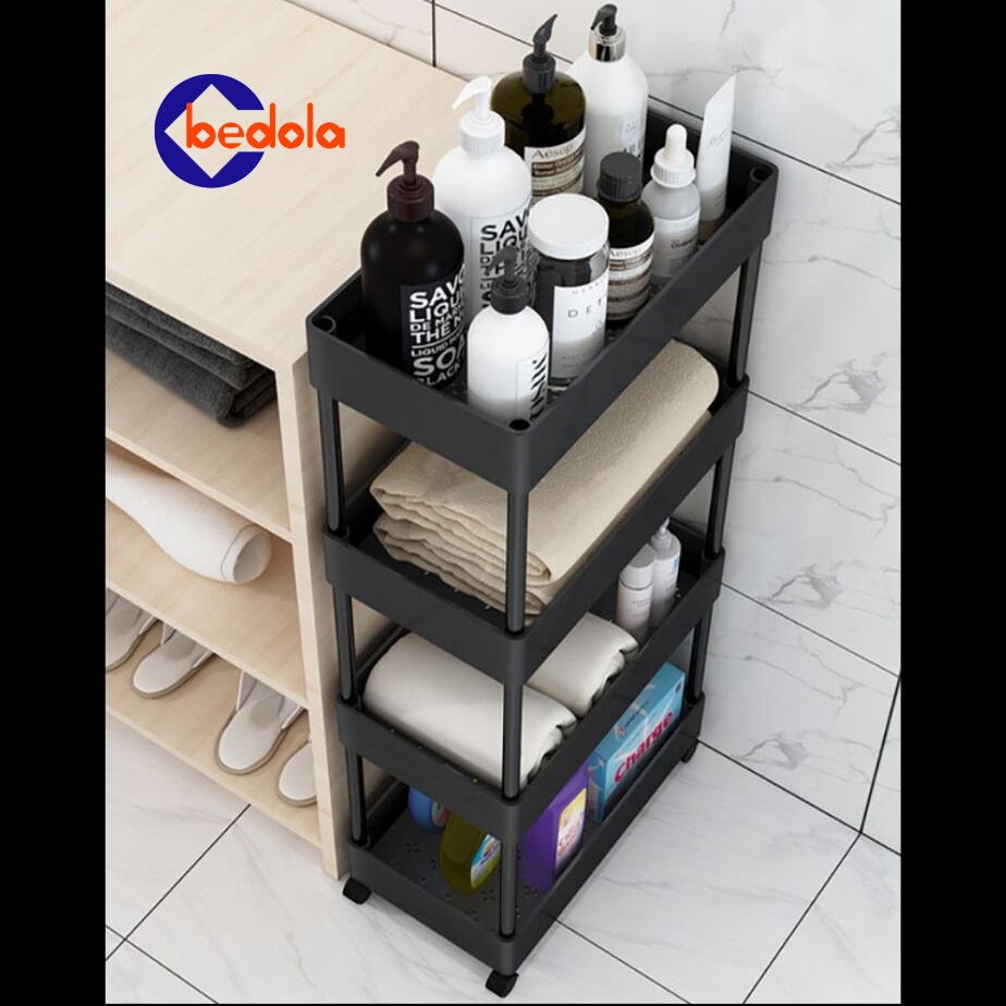 Square rak dapur rak toilet rak susun serbaguna rak dorong rak salon rak troli 4 tingkat dengan roda