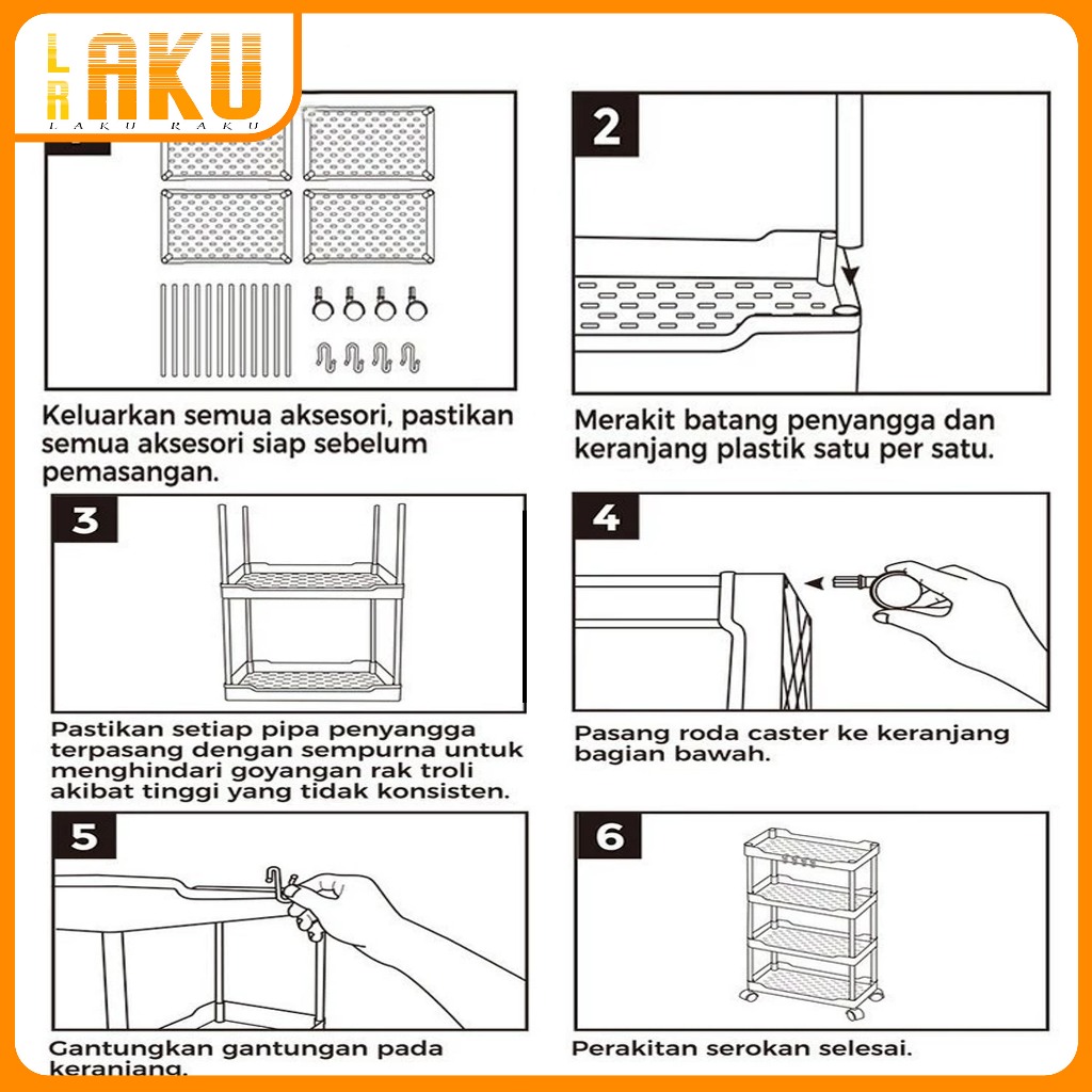 (LR) Rak Troli 4 Susun/Rak Dapur/ Rak Serbaguna Rak Model Segitiga Plastik Kokoh Kuat