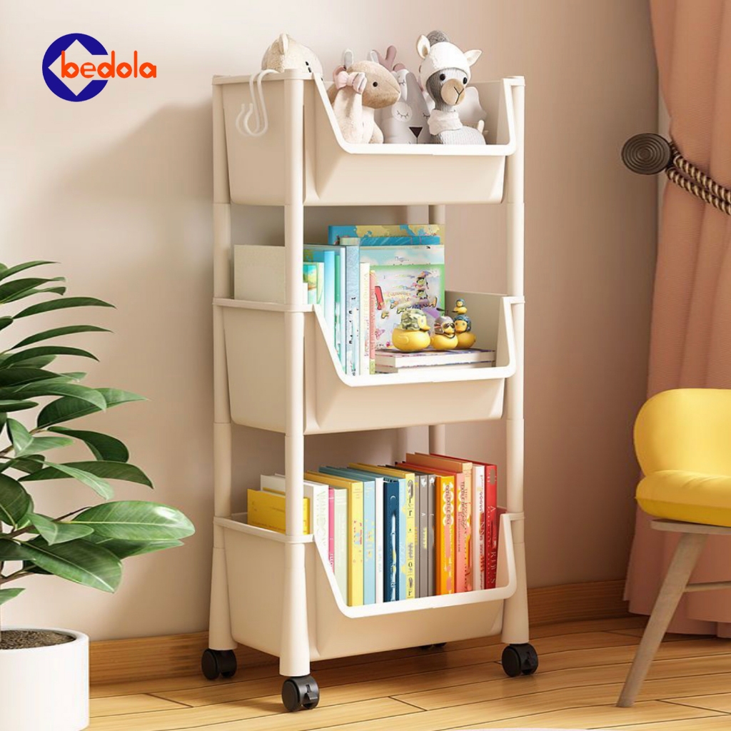 Rak dorong plastik rak dapur serbaguna rak penyimpanan buku rak susun rak toilet kamar mandi portable dengan roda