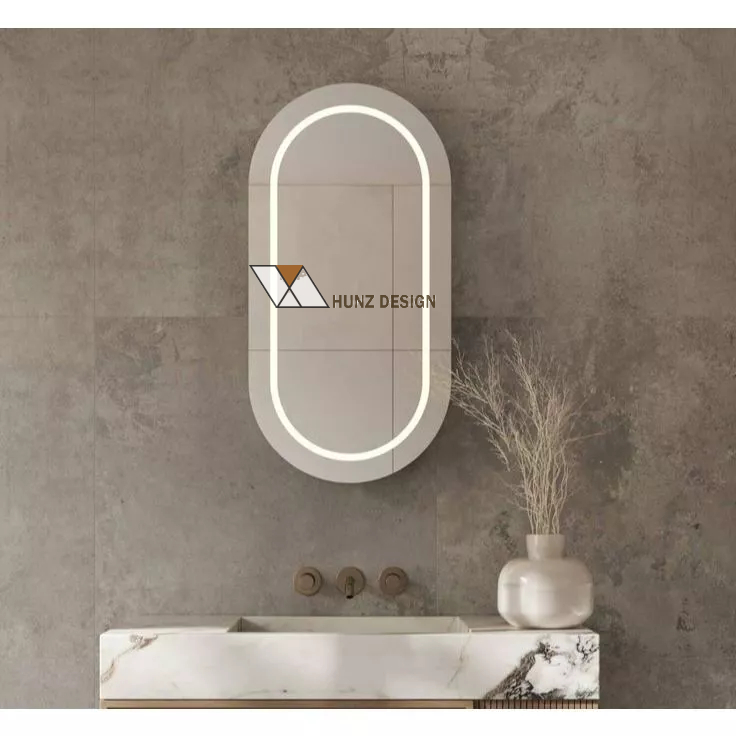 [Star] CERMIN LED Sanblast Touchscreen OVAL KAPSUL DINDING AESTEHTIC (GARANSI 100 PERSEN) FREE PACKING KAYU