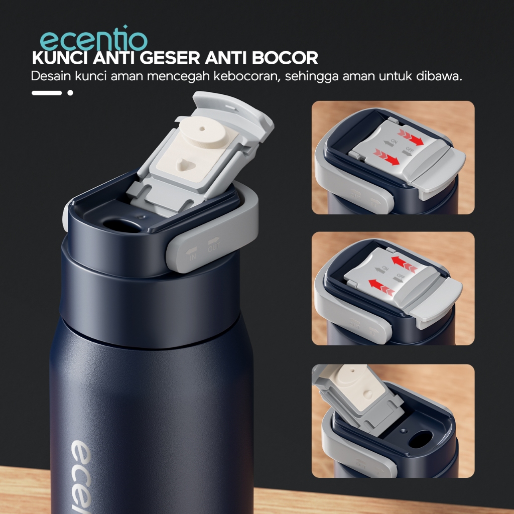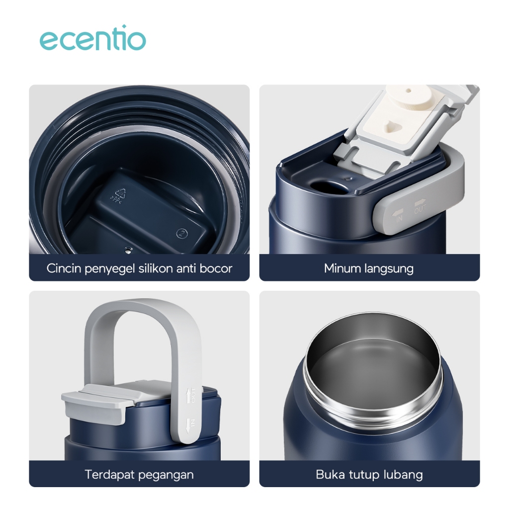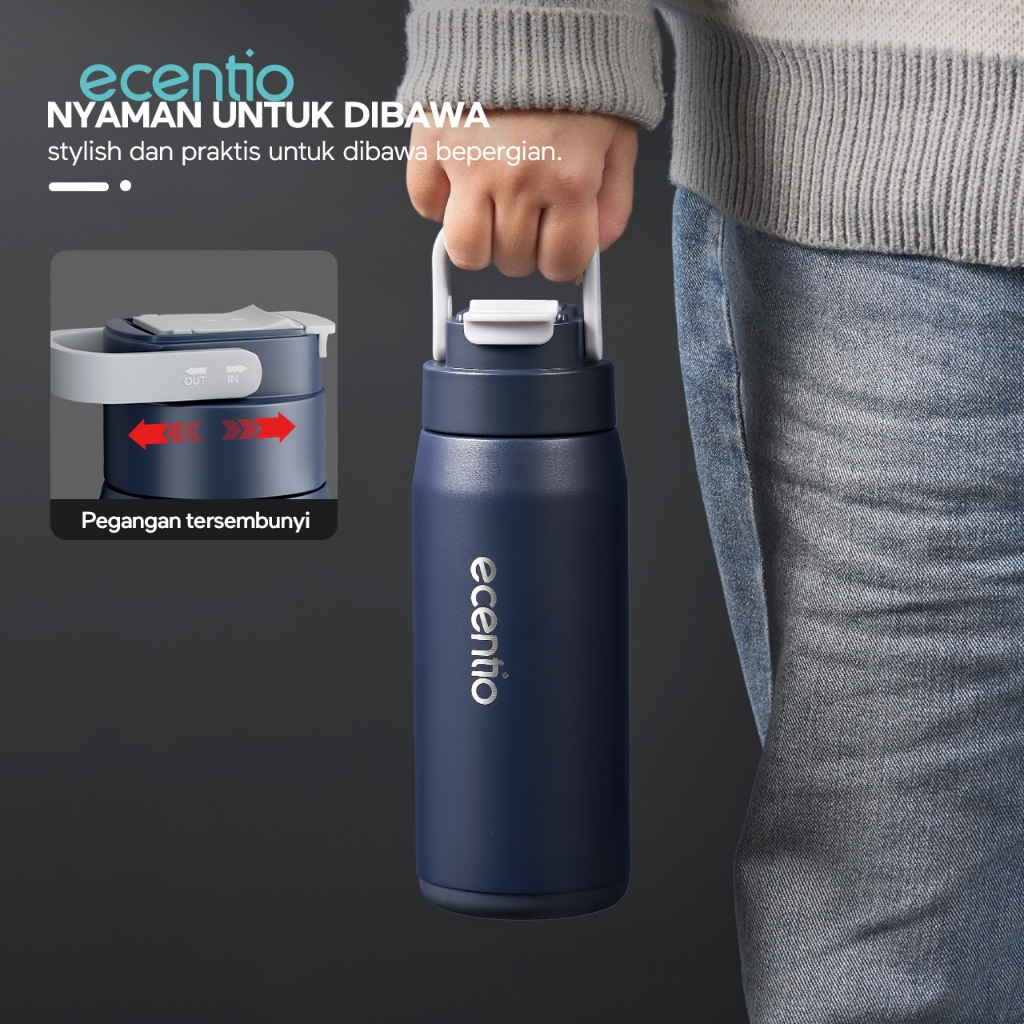 ecentio termos stainless steel Premium Panas Dingin Termos Air Panas 600ml Botol Minum Tahan Panas Anti tumpah Tumbler