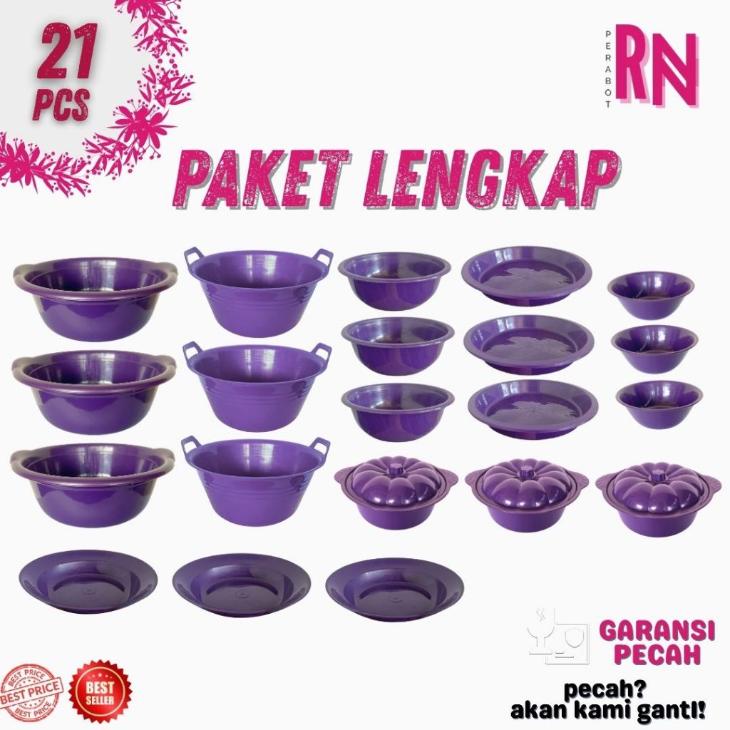 [21 PCS] PAKET LENGKAP PERALATAN RUMAH TANGGA /SET DAPUR PLASTIK /BASKOM /BAK KUPING / NAMPAN /BASI SAYUR /PIRING /MANGK
