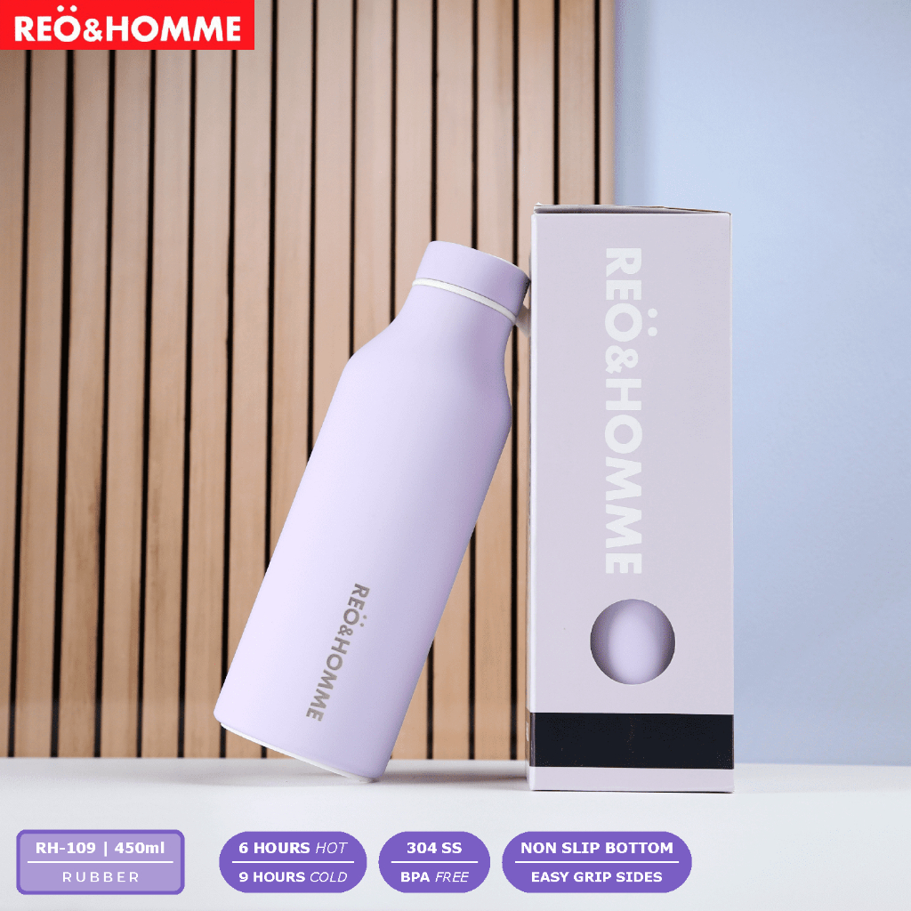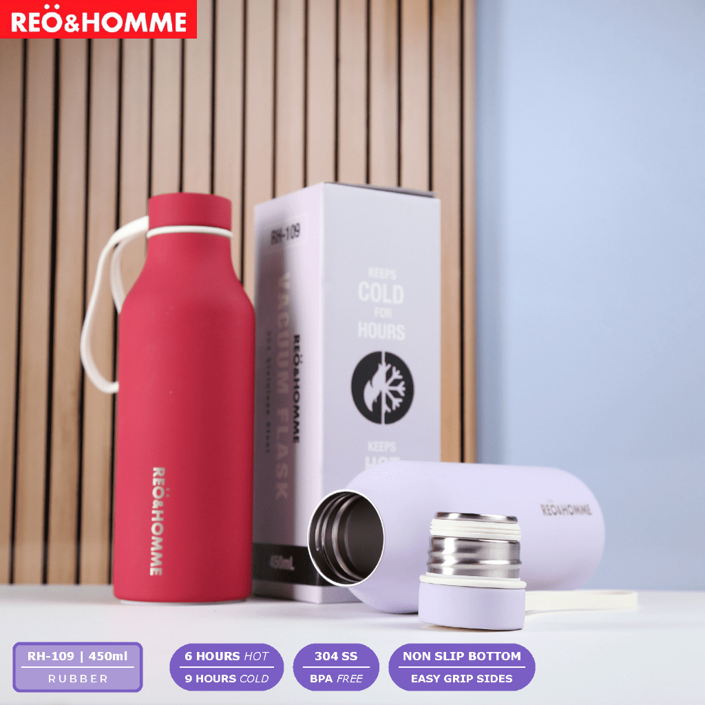 Reo&Homme Tumbler Stainless Vacuum Thermos dengan Strap Silikon 450 ML Tahan Panas Dingin RH-109