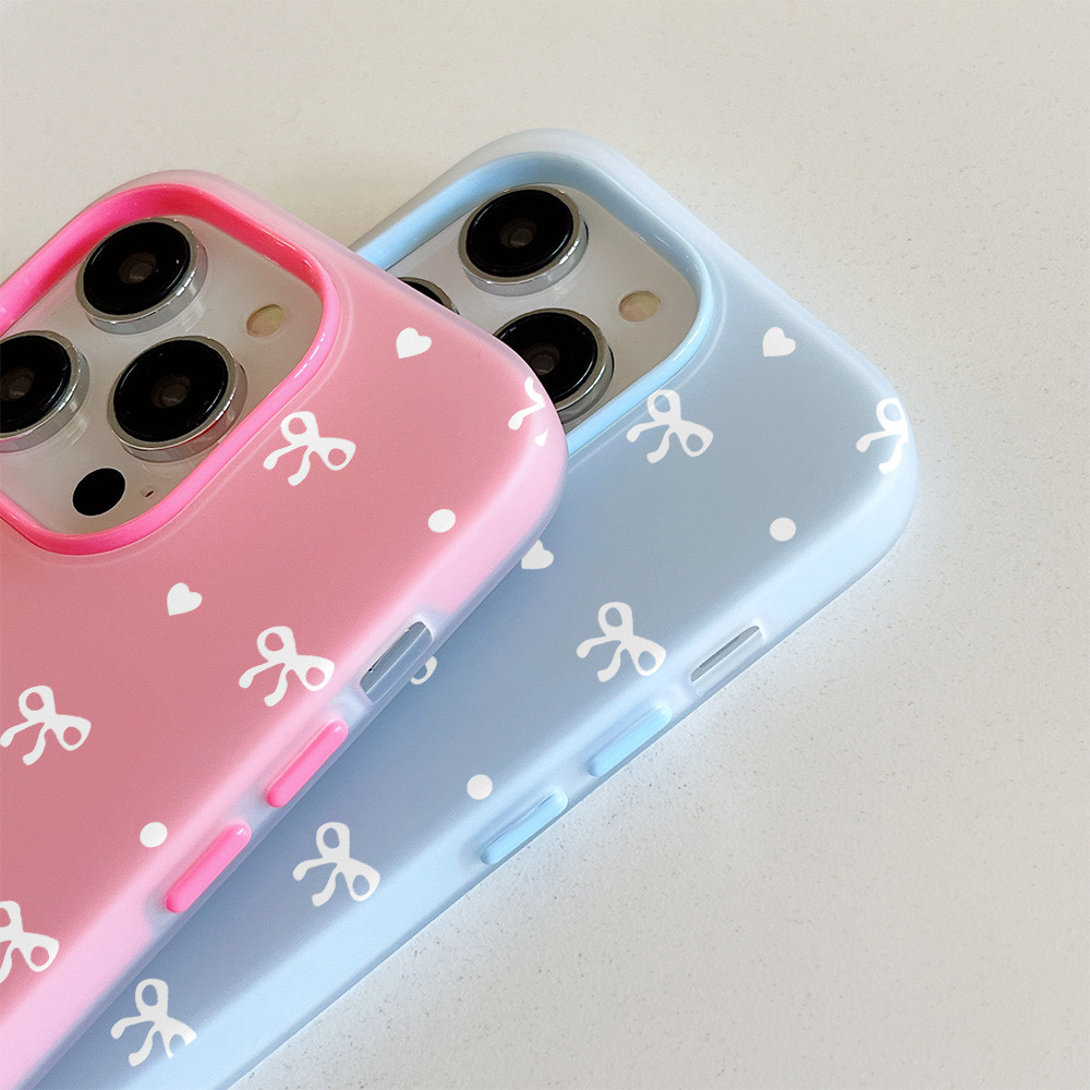 MAXCOBBER Beautiful bow white heart Jelly Color 2 in 1 Case for iPhone 13 14+ 14 15 16 Plus Pro Max 7 8 Plus X XS XR